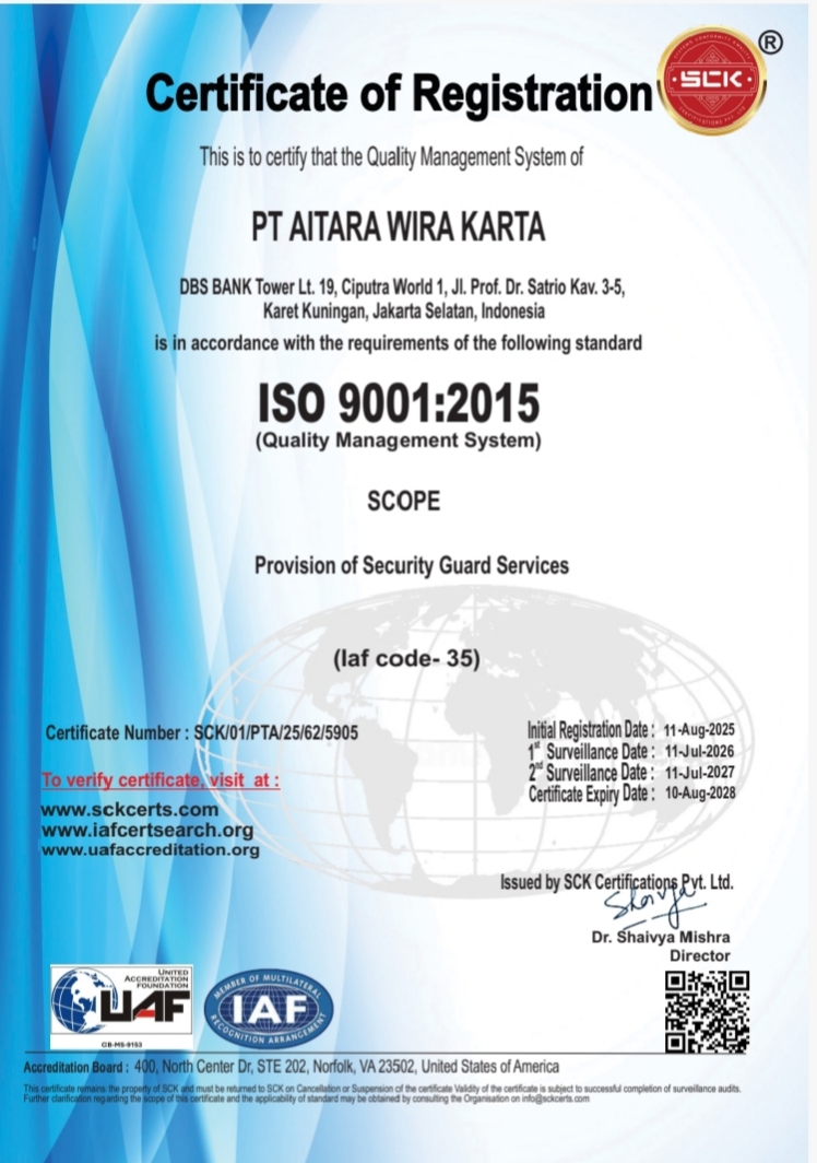 PT Aitara Wira Karta Membuktikan kualitas manajemenya,Setelah mencapai status sebagai BUJP Teladan tingkat nasional 2025.Hal tersebut tidak lepas dari keseriusan Manajamen dalam memperhatikan aspek – aspek pendukung oprasional yang selalu di lakukan pembenahan secara berkala, Aitara berkomitmen untuk menetapkan, melaksanakan dan memelihara kebijakan Mutu dan K3L.